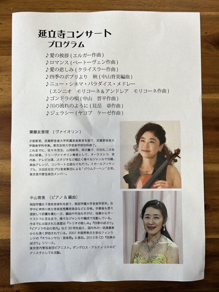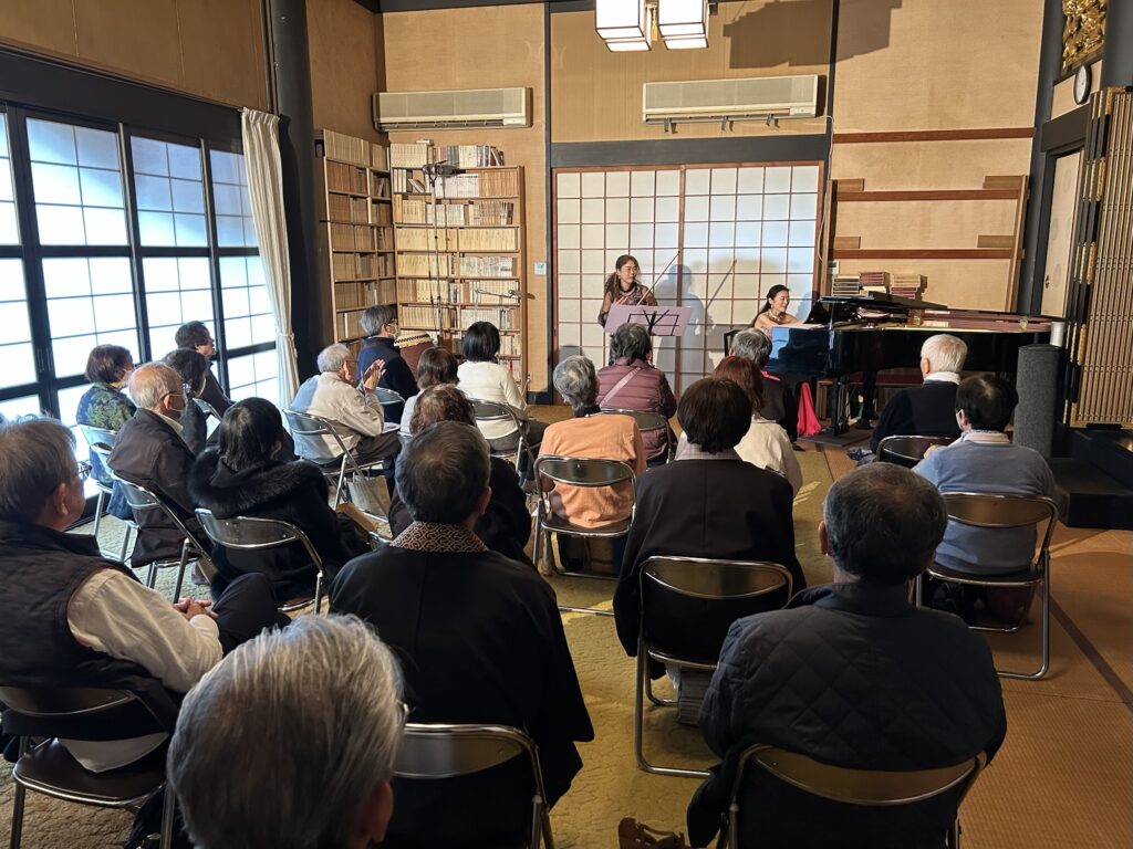 投稿日: 2025年11月9日2025年11月9日延立寺報恩講 本日の延立寺報恩講。午前中法務があり法要には間に合いませんでしたが、延立寺コンサートには間に合いました😌🙏本堂でヴァイオリンとピアノの協奏曲。和と洋が融合した素敵な時間でした♪有難う御座いました🙏🥹