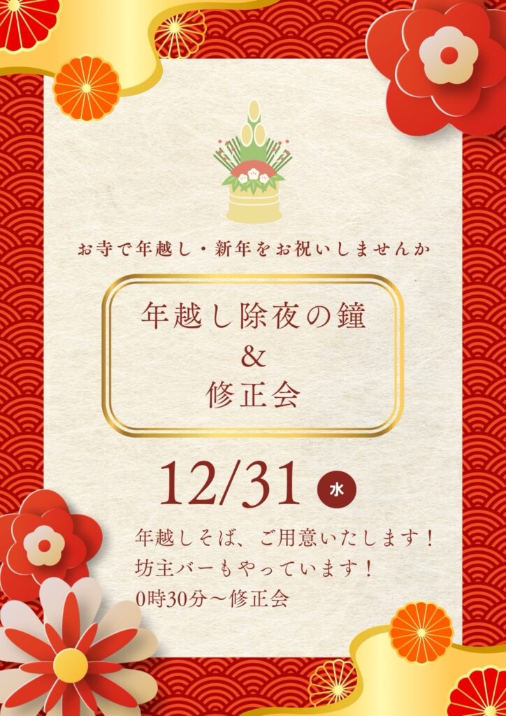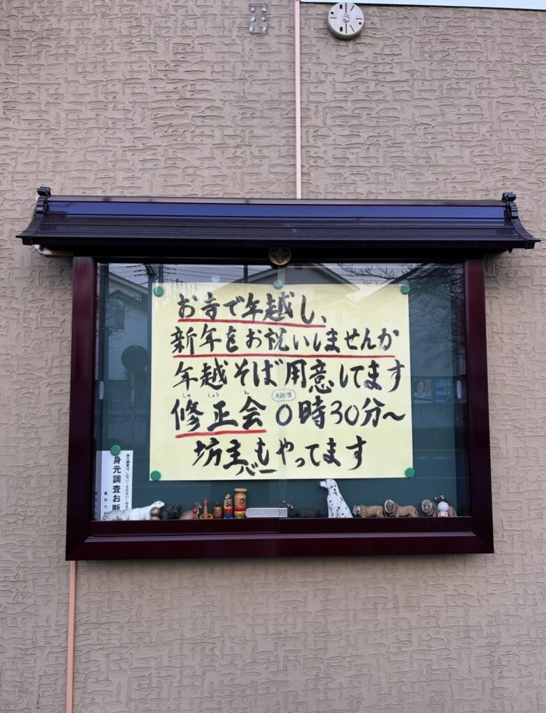 投稿日: 2025年12月10日2025年12月10日除夜の鐘 今年もやりますよ〜😄✨去年は4時頃まで、ご近所さん常連さん御門徒さんとドンちゃん騒ぎ?!お寺でいいの?もちろんいいんですよ😆お待ちしております🙏😌✨