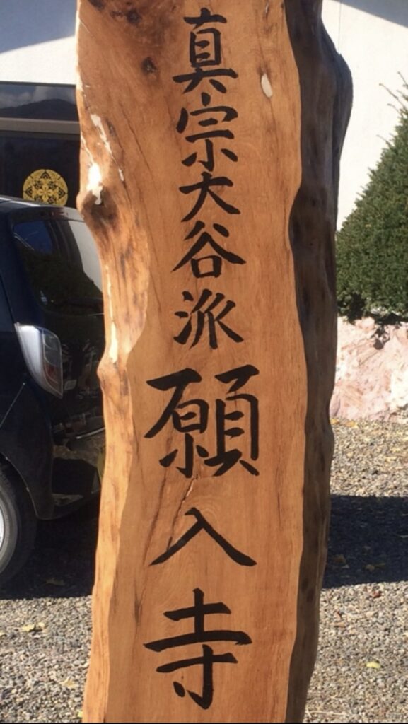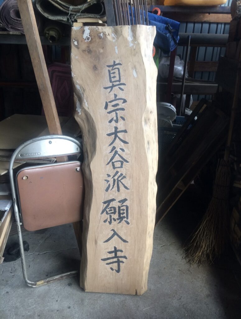 御門徒さんからご寄付の11年経ったナラの木の看板。
